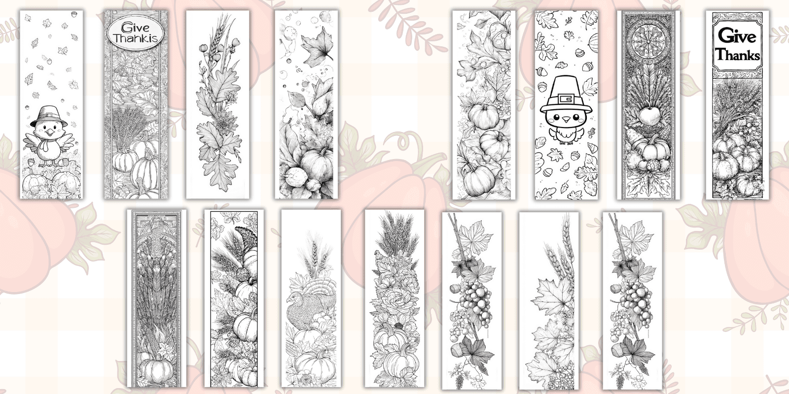 15 Thanksgiving Coloring Bookmarks – Fun Fall Activity for Kids & Adults