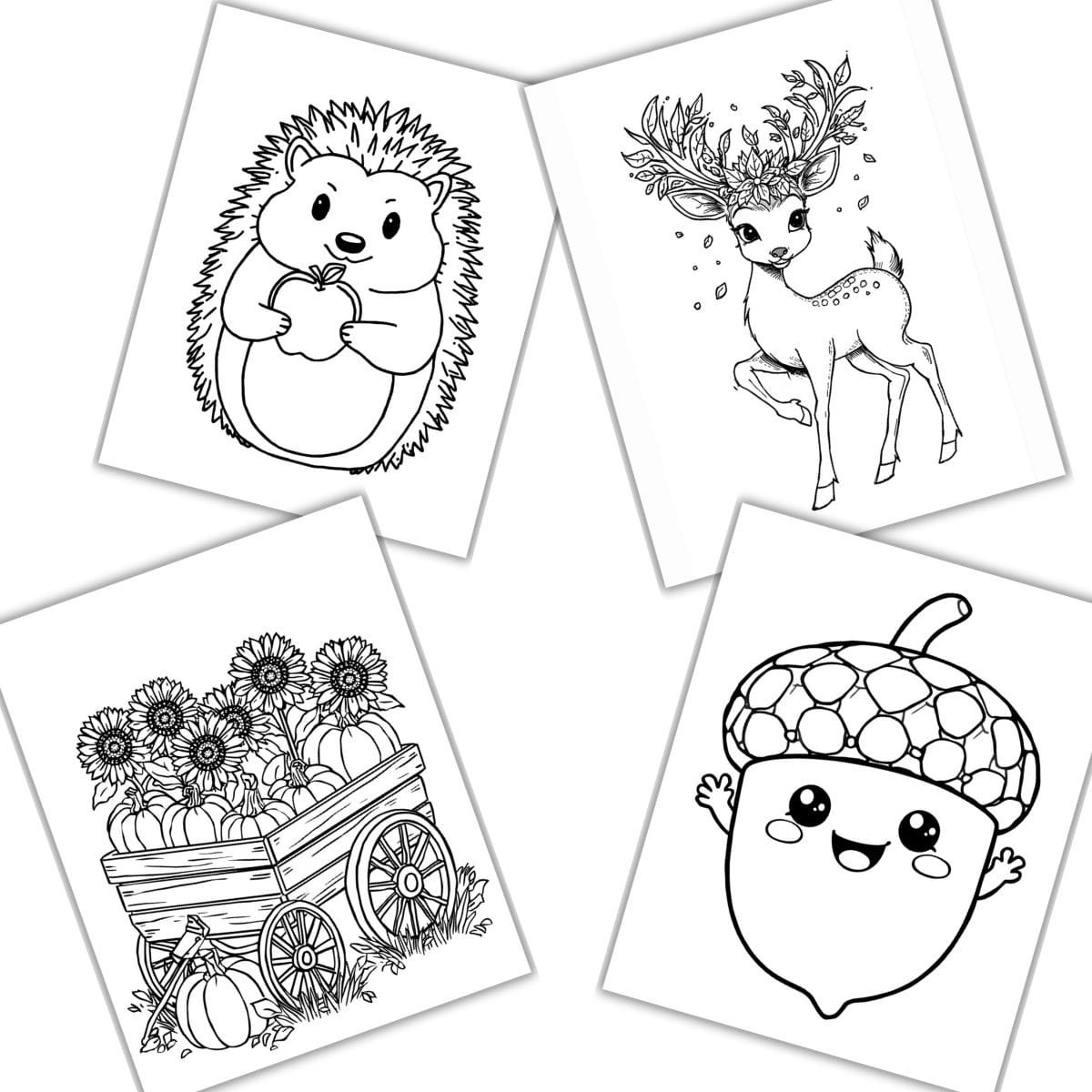 • 35 unique fall-themed illustrated autumn coloring book across three difficulty levels