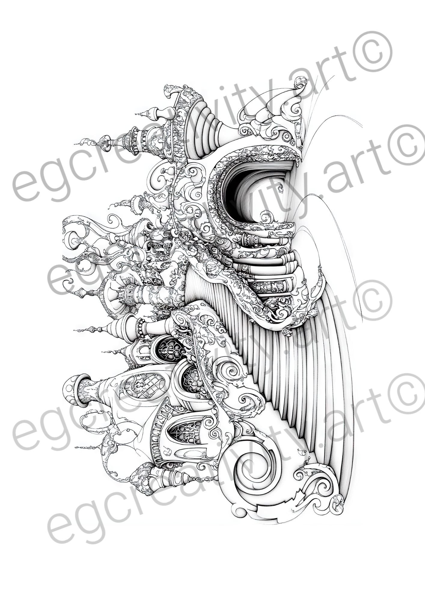 Step 6: Begin your creative journey through enchanted realms, bringing these mythical world coloring pages to life with your unique color choices.