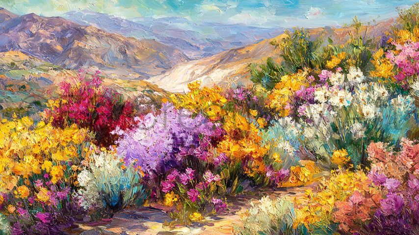 Bring the magic of the desert in full bloom straight to your walls. These vibrant floral desert wall art printables capture the wild beauty of sun-drenched landscapes — think cascading wildflowers, expressive oil painting washes, and earthy desert tones that feel both alive and deeply serene.