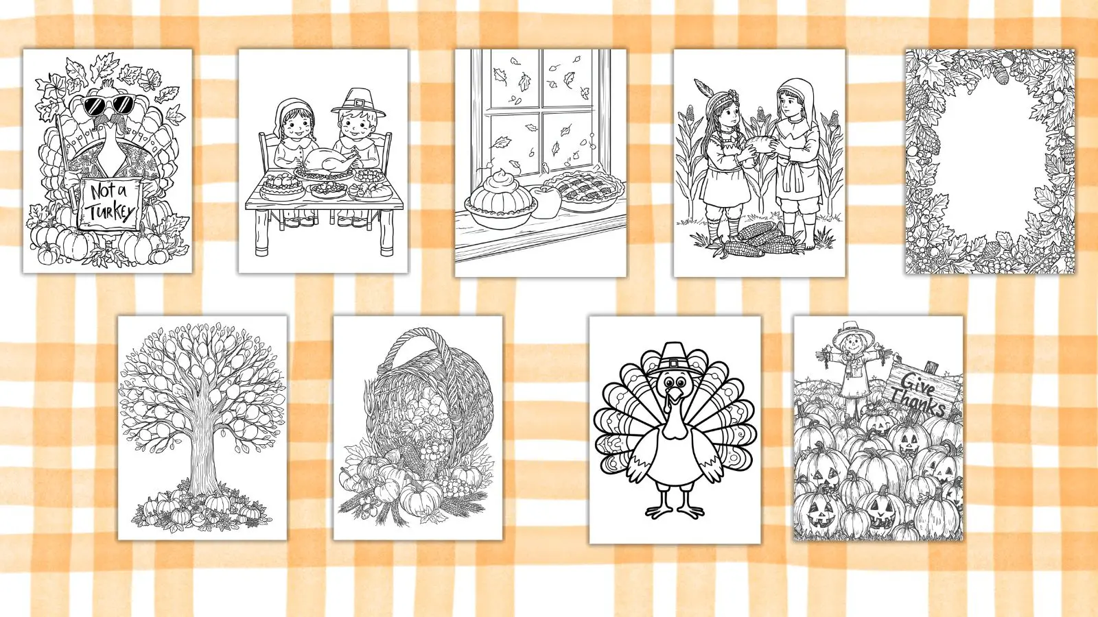 You’ll receive 1 ready-to-print PDF containing 9 unique Thanksgiving coloring pages, delivered instantly to your inbox the moment your purchase is complete. No waiting, no shipping — just download, print, and color.